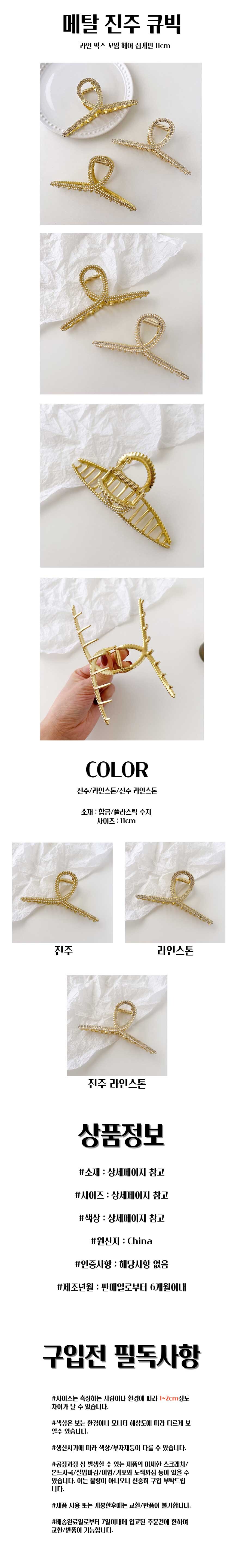 메탈 진주 큐빅 라인 믹스 꼬임 헤어 집게핀 11cm