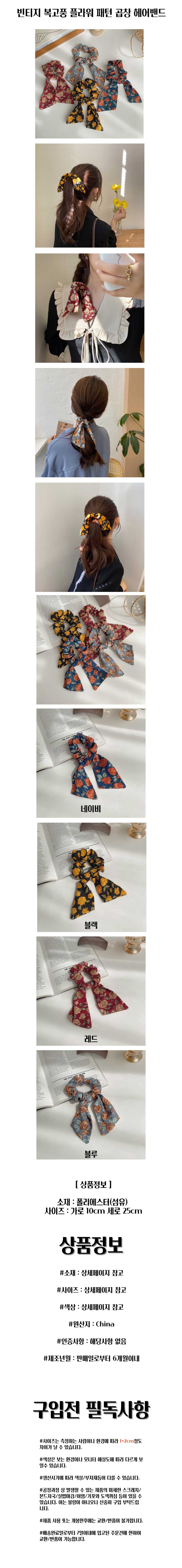 빈티지 복고풍 플라워 패턴 곱창 헤어밴드