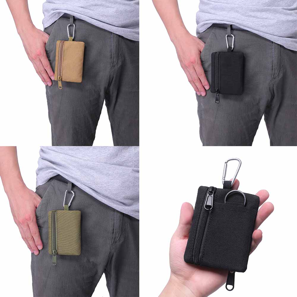 밀리터리 양면 지퍼포켓 D링 카라비너 미니 파우치