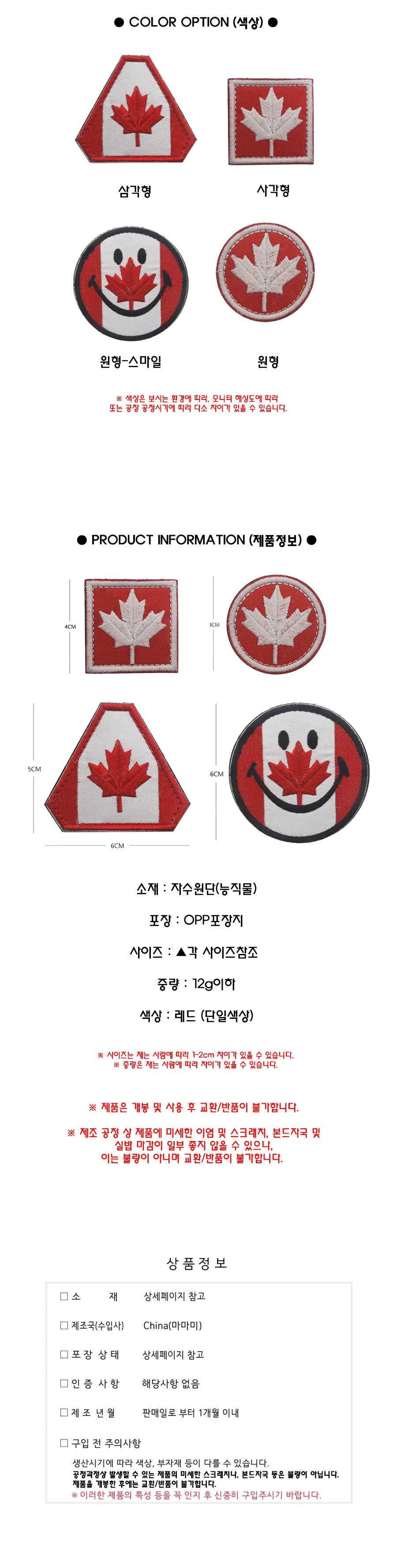 고급 다각형 캐나다 벨크로 자수 와펜 패치(4종/택일)
