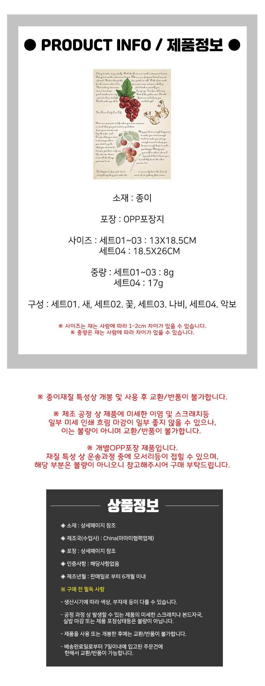 레트로 빈티지 악보,꽃과 새,영문 엽서 양면 종이 장식 촬영 소품 세트 (4장 8페이지)