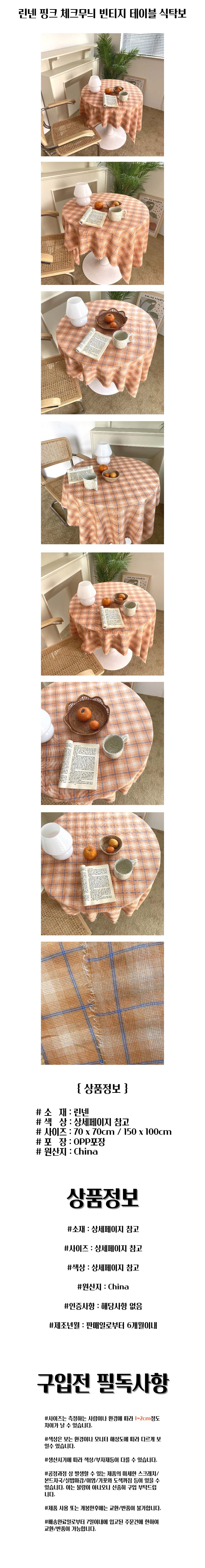 린넨 핑크체크무늬 빈티지 테이블 식탁보