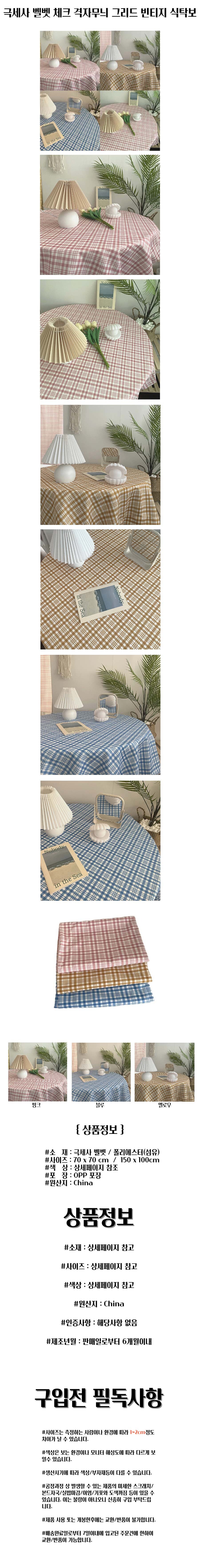 극세사 벨벳 체크 격자무늬 그리드 빈티지 식탁보