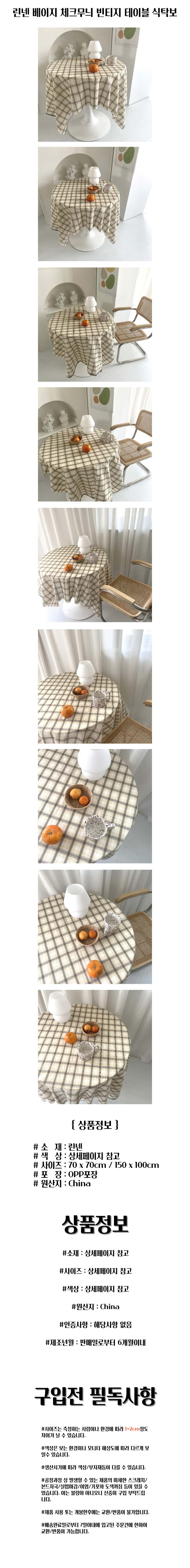 린넨 베이지 체크무늬 빈티지 테이블 식탁보