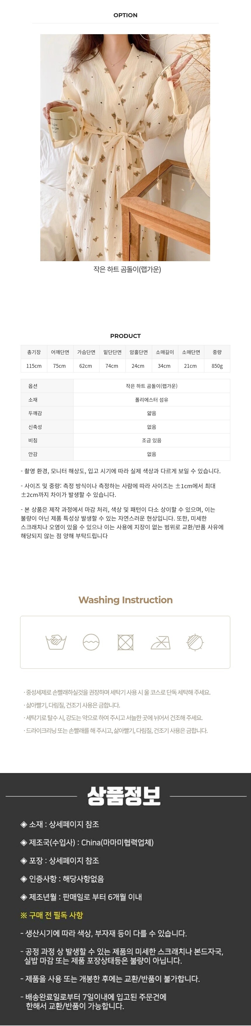 옵션 : 작은 하트 곰돌이(랩가운)