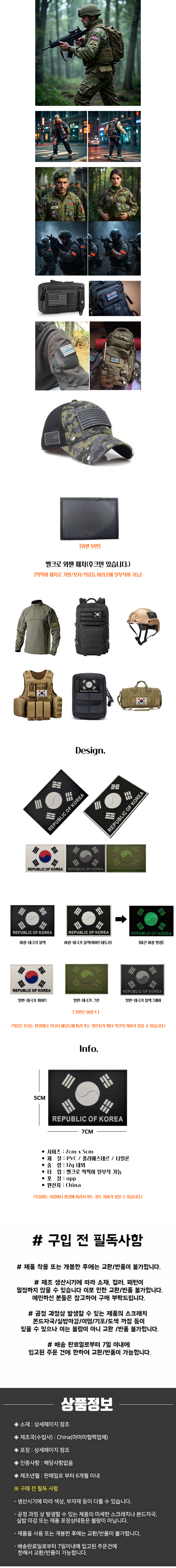 REPUBLIC OF KOREA 태극기 PVC 야광 일반 벨크로 와펜 패치 5종(야광2종/일반3종)