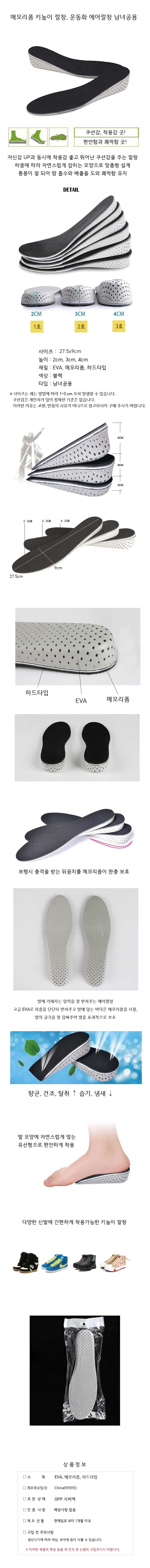 메모리폼 키높이 긴깔창 2cm 3cm 4cm (1켤레)