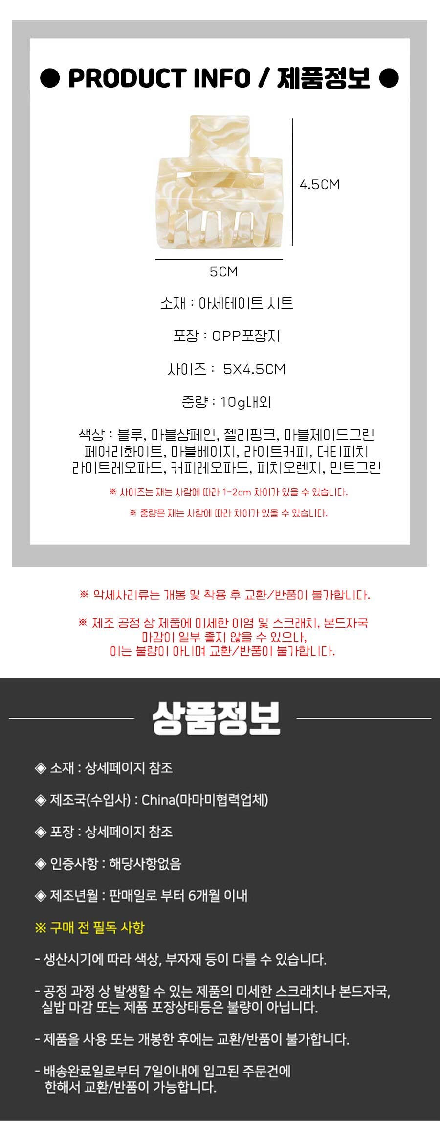 프랑스핀 아세테이트 반미니 정사각 12컬러 5CM 헤어 집게핀