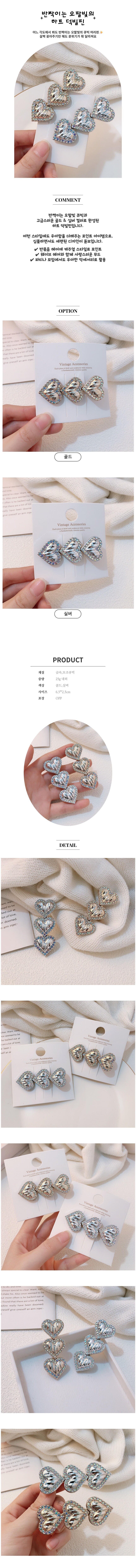 반짝 오팔빛 큐빅 메탈 하트 덕빌 머리핀