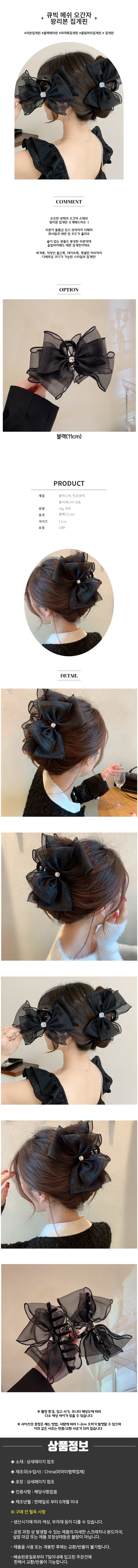 큐빅 블랙 메쉬 오간자 왕리본 올림머리 집게핀