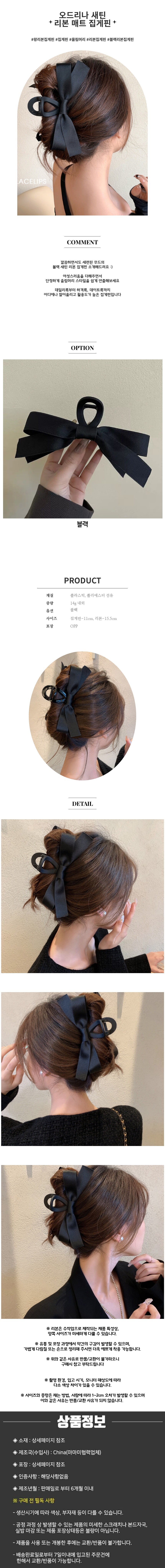 오드리나 새틴 리본 매트 올림머리 빅사이 집게핀