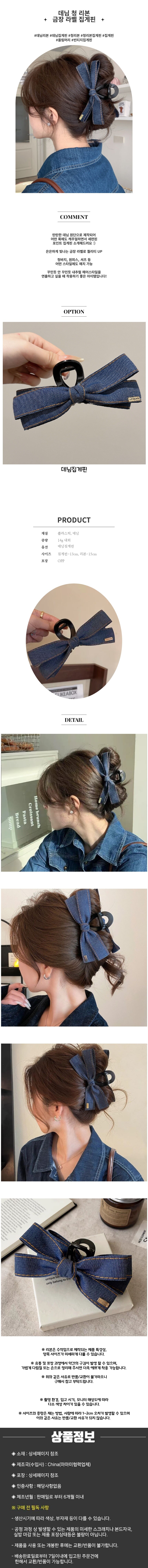 빈티지 무드 데님 청 리본 금장 라벨 올림머리 집게핀