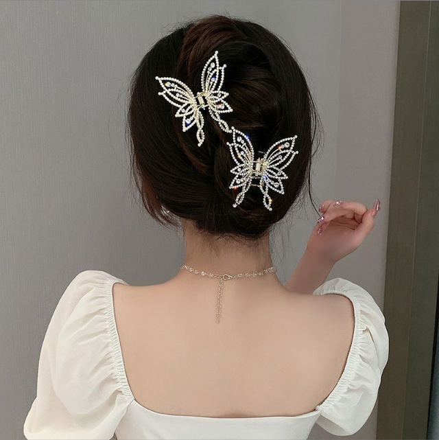 반짝 나비 진주 큐빅 올림머리 집게핀