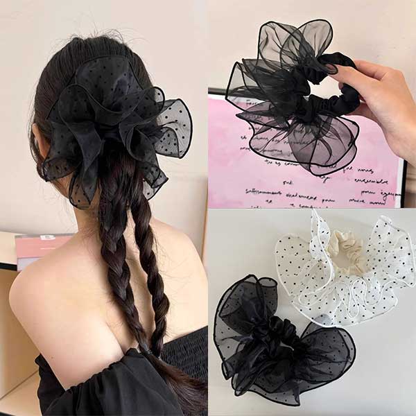 머메이드 메쉬 폴카 도트 스크런치 헤어슈슈 곱창밴드 머리끈