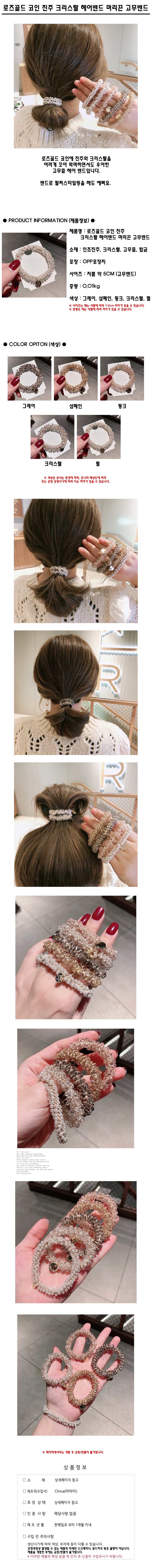 로즈골드 코인 진주 크리스탈 헤어밴드 머리끈 고무밴드