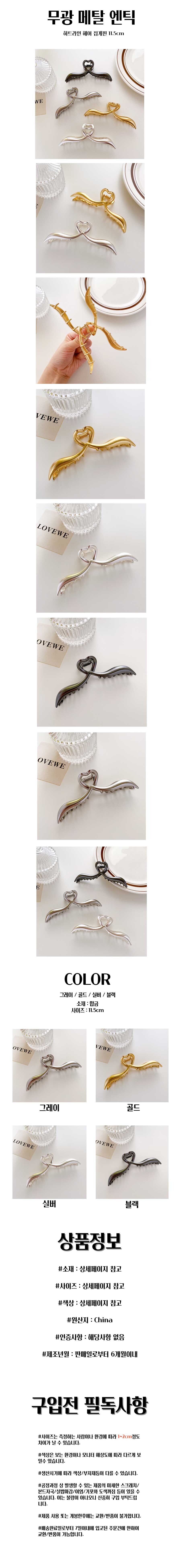 [단종예정] 무광 메탈 엔틱 하트라인 헤어 집게핀 11.5cm