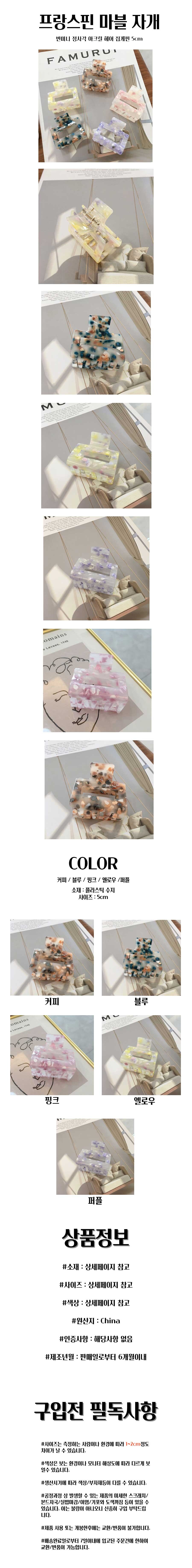 프랑스핀 마블 자개 반미니 정사각 아크릴 헤어 집게핀 5cm