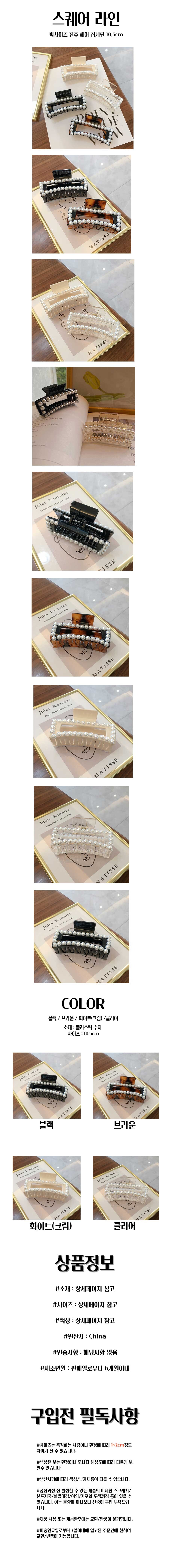 [단종예정] 스퀘어 라인 빅사이즈 진주 헤어 집게핀 10.5cm