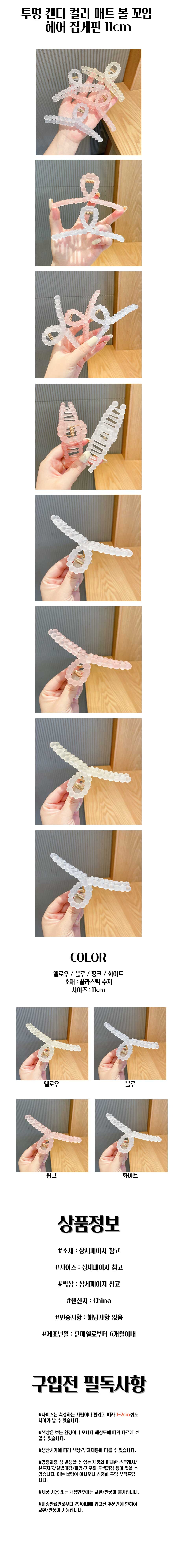 투명 캔디 컬러 매트 볼 꼬임 헤어 집게핀 11cm