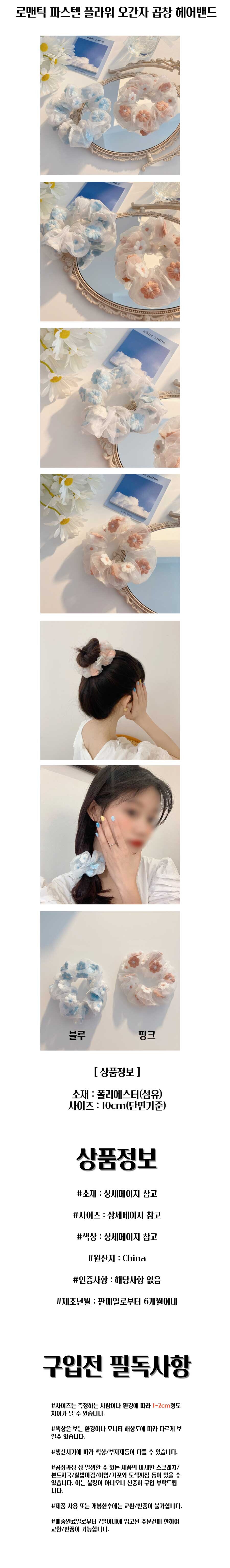 로맨틱 파스텔 플라워 오간자 곱창 헤어밴드 2color