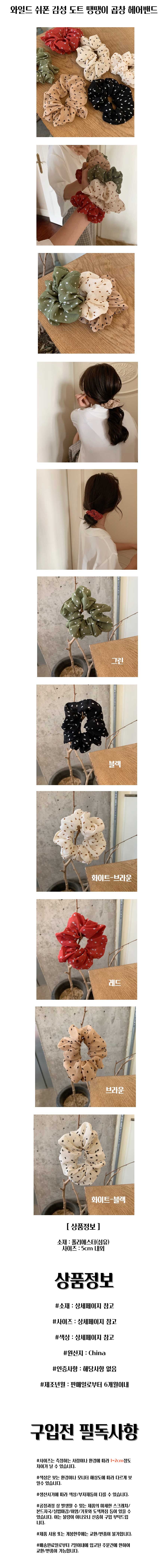 와일드 쉬폰 감성 도트 땡땡이 곱창 헤어밴드