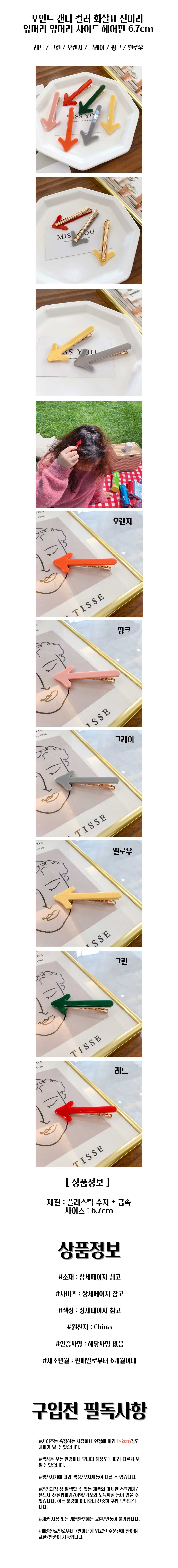 [단종예정] 포인트 캔디 컬러 화살표 잔머리 앞머리 옆머리 사이드 헤어핀 6.7cm