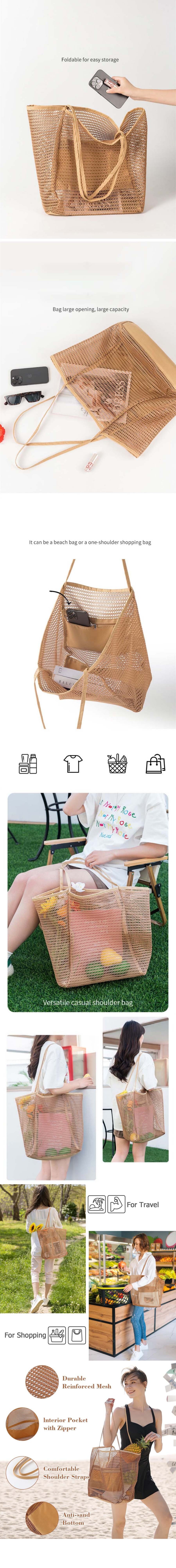 폴더블 접이식 옥스포드 메쉬 망사 여행 비치 가방