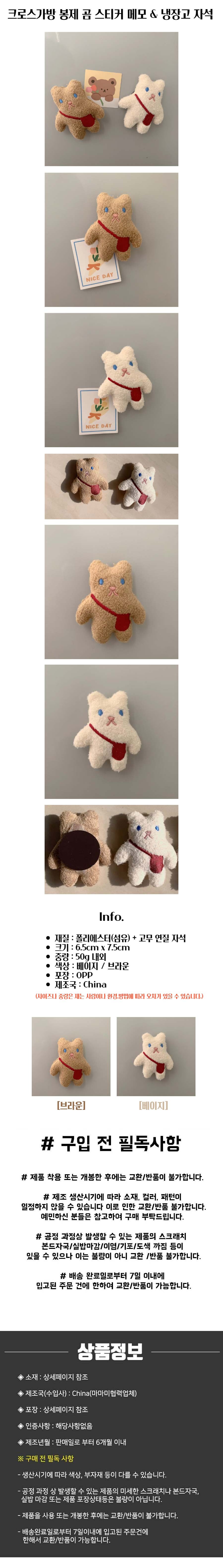 크로스가방 봉제 곰인형 스티커 메모&냉장고 자석