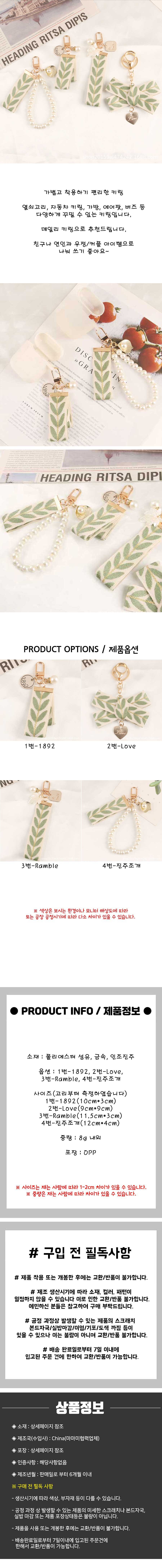 초록잎 자수 팬던트 조개 진주 버즈 에어팟 열쇠고리 키링