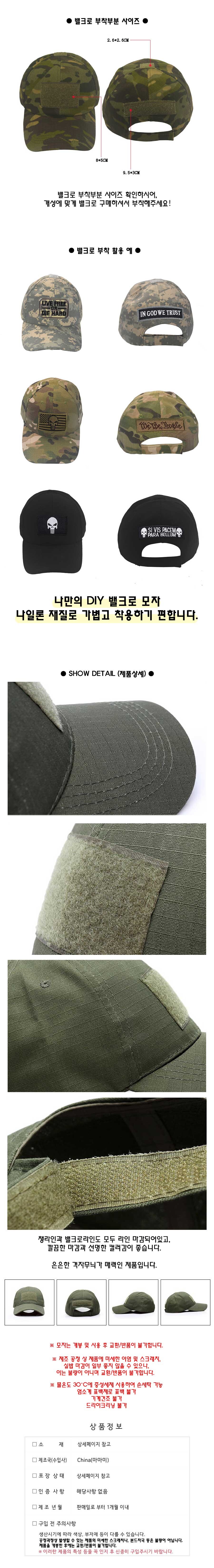 [색상추가] 밀리터리 전술 DIY 벨크로 자수 와펜 전투 모자