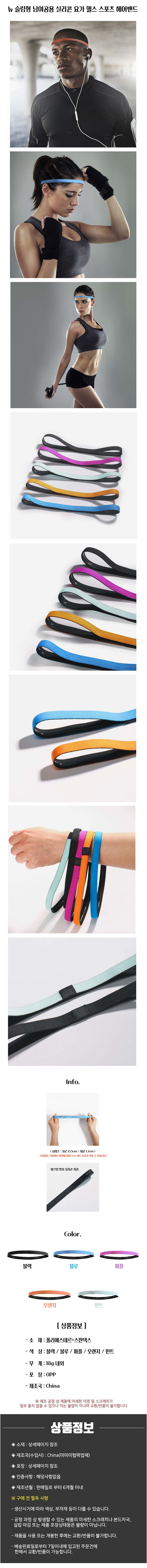뉴 슬림형 남여공용 실리콘 요가 헬스 스포츠 헤어밴드 5종