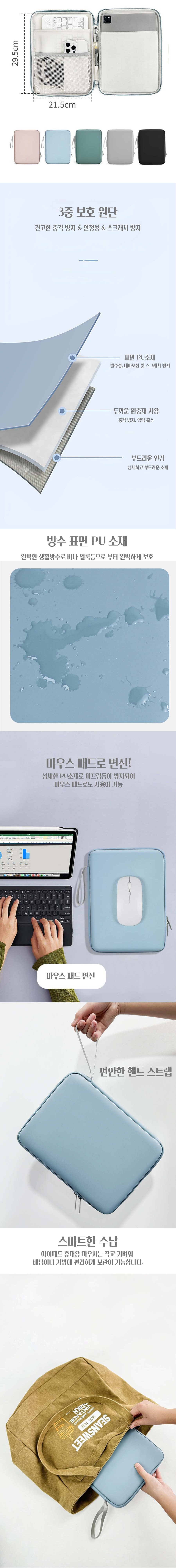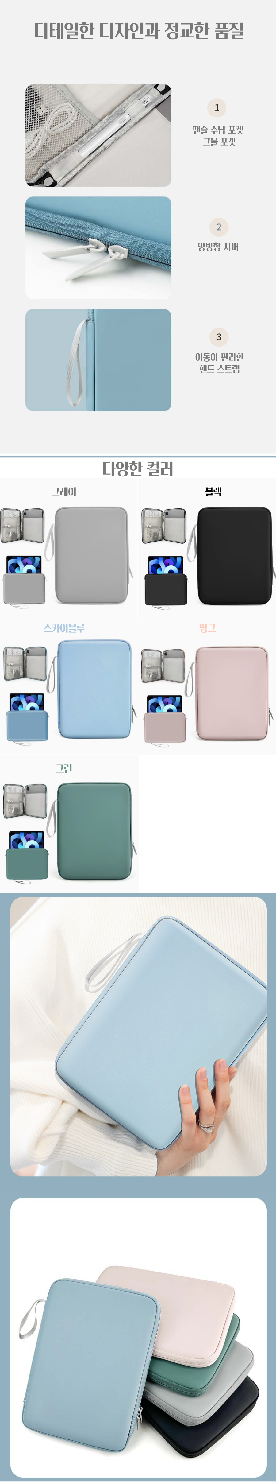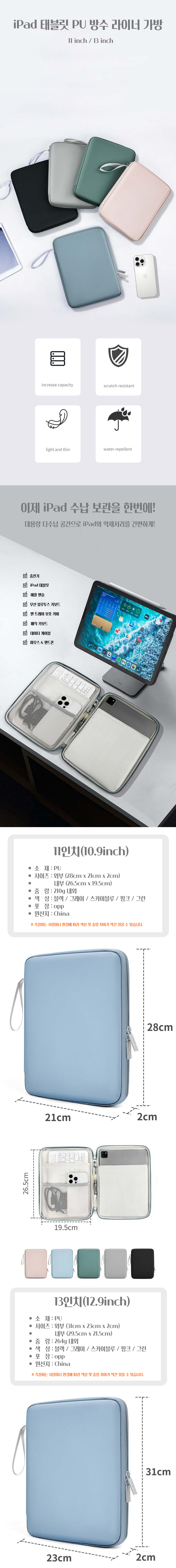 올인원 아이패드 태블릿 라이너 PU 방수 보호 11인치 13인치 라이너 스트랩 파우치 가방 5color
