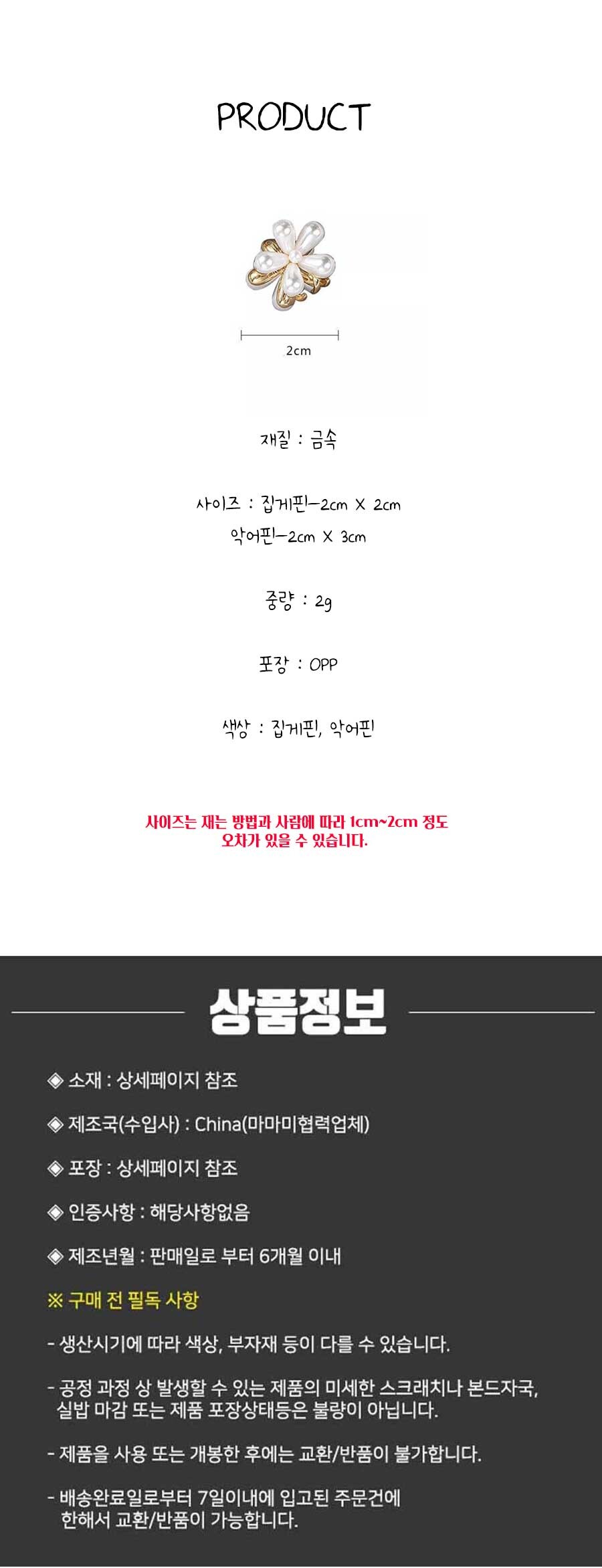 미니 다섯꽃잎 진주 헤어 클립 앞머리핀 집게핀