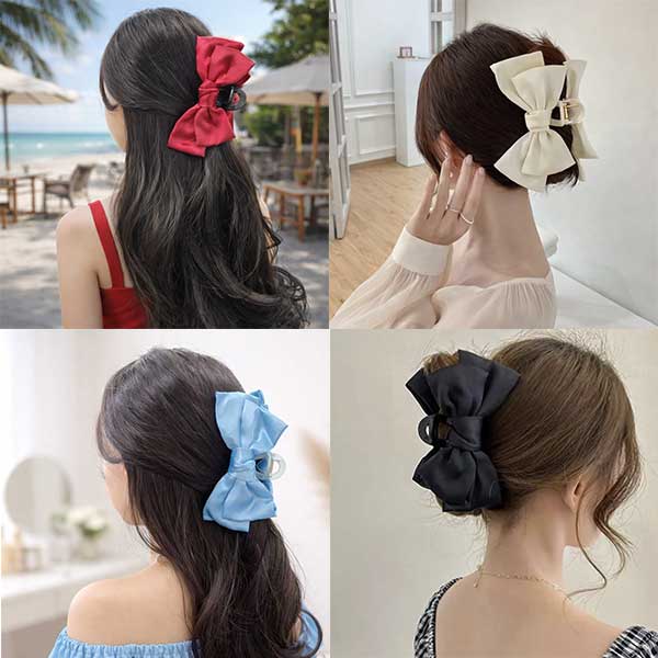 [색상추가] 소녀풍 새틴 왕리본 올림머리 집게핀 4컬러