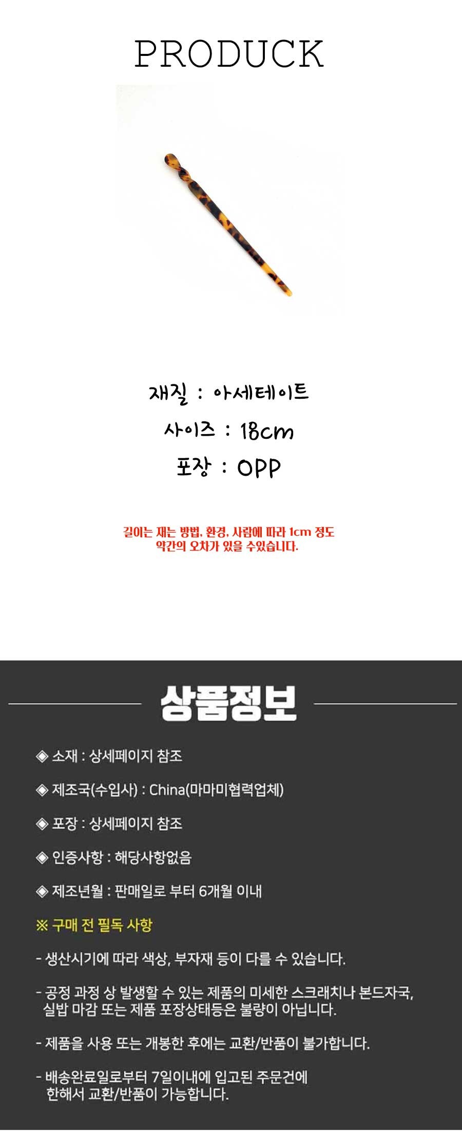 아세테이트 마블 올림머리 젓가락 뒤꽂이 비녀 8종