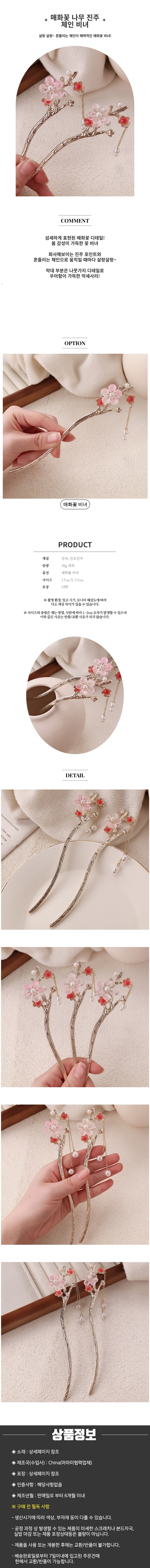 매화꽃 나무 체인 진주 금속 올림머리 뒤꽂이 비녀