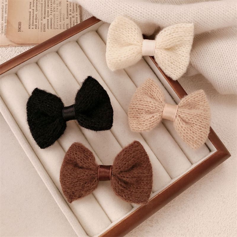 부드러운 니트 털실 리본 덕빌핀 집게 머리핀