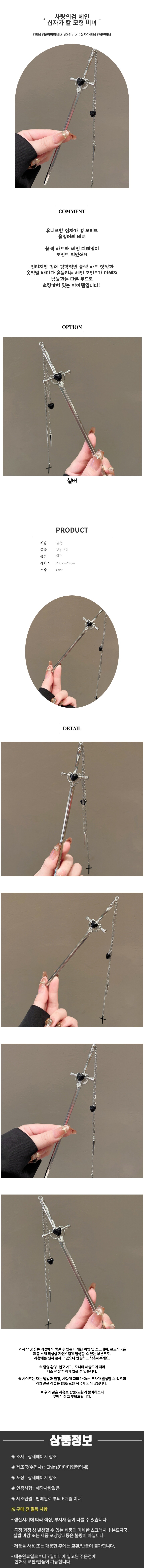 사랑의 검 체인 십자가 칼 모형 올림머리 비녀