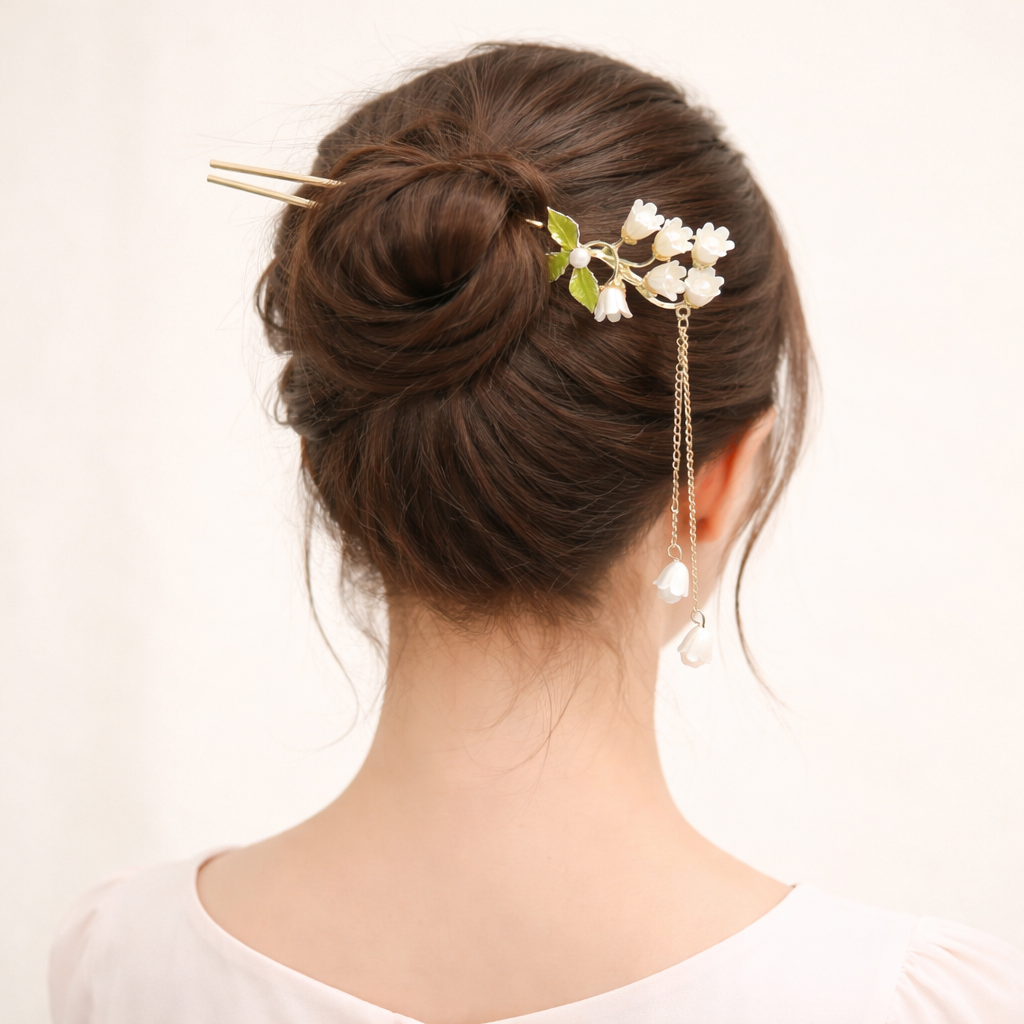 은방울꽃 진주 드롭 체인 U자형 일자형 비녀