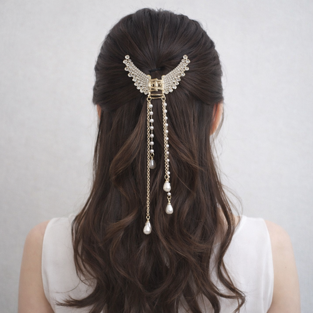 천사의 날개 진주 큐빅 체인 드롭 미디움 집게핀